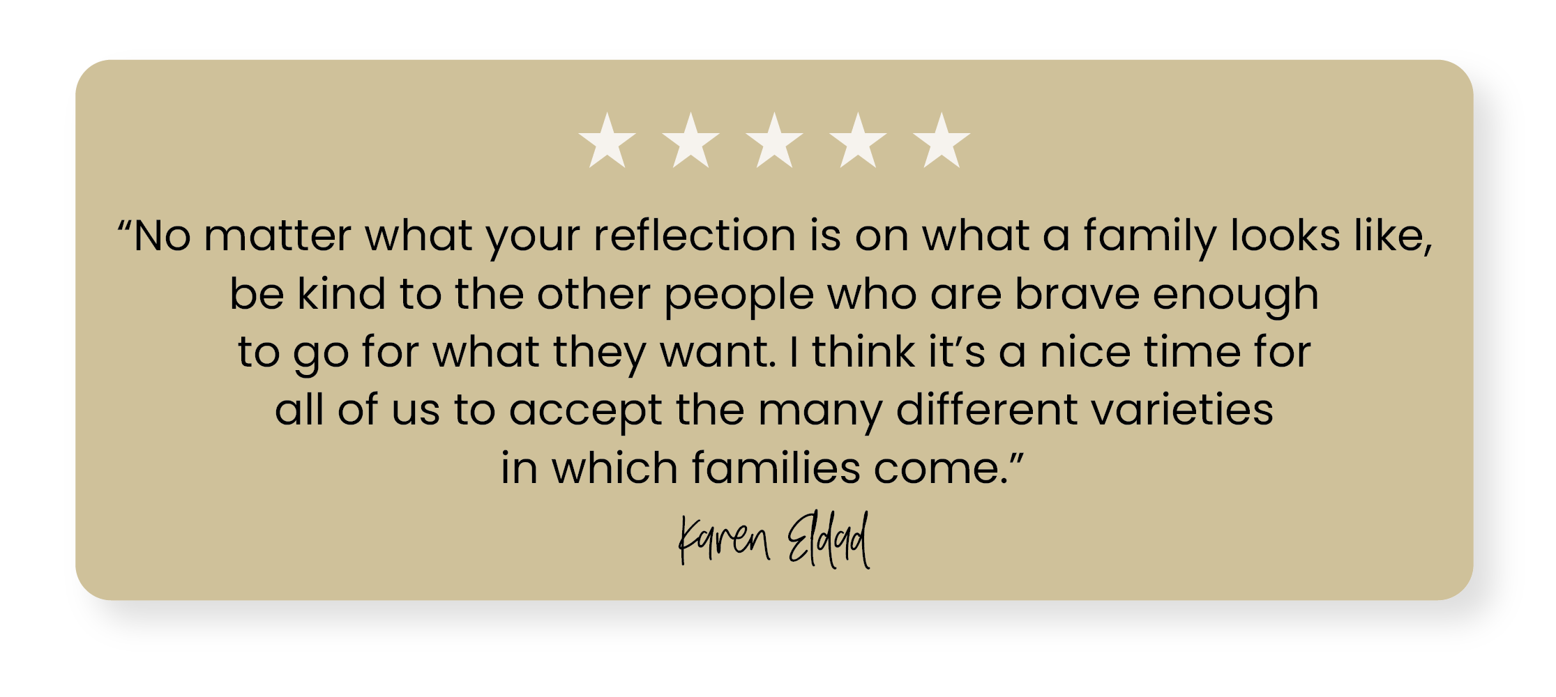 Together, you and I are going to write our own fairytales and change expectations around what family lives should be. Through shared stories we will find commonality and move away from the isolation that can arise during your journey. We’ll dive into the emotional, complex, loving, and challenging dynamics around all of the ways you navigate what your family will look like.